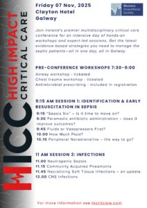 The Hi Impact Critical Care (HICC) Conference, organised by the Western Anaesthesia Society, is Ireland’s only general multidisciplinary critical care meeting bringing together clinicians from across Anaesthesia, Intensive Care, and Emergency Medicine for a day of learning, discussion, and collaboration.