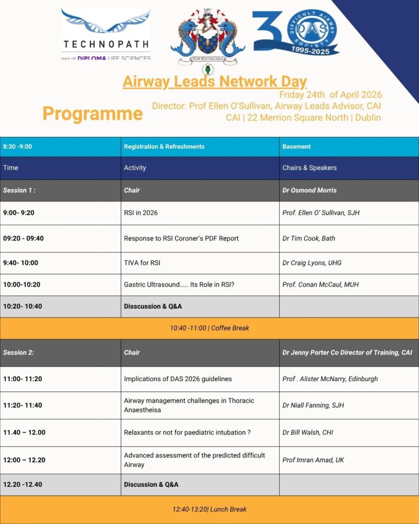 Open to: Consultants, Trainees, NCHDs & Airway Leads