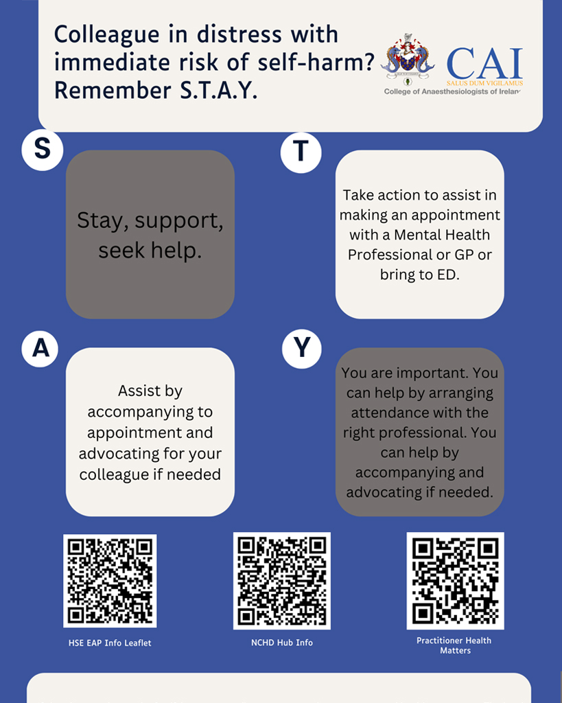 Wellbeing & Supports: Information and advice on wellbeing for doctors from the Association of Anaesthetists please click here.